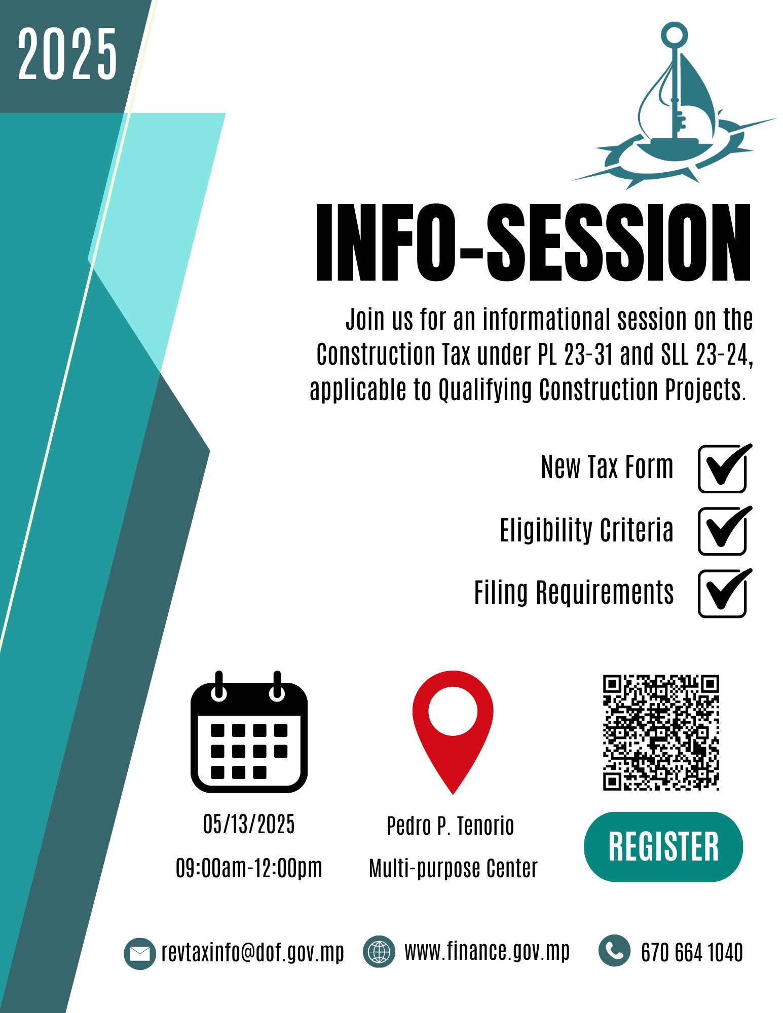 DRT will host an informational session on May 13, 2025, on the Tax imposed for Qualifying Construction Projects under PL 23-31 and SLL 23-24.